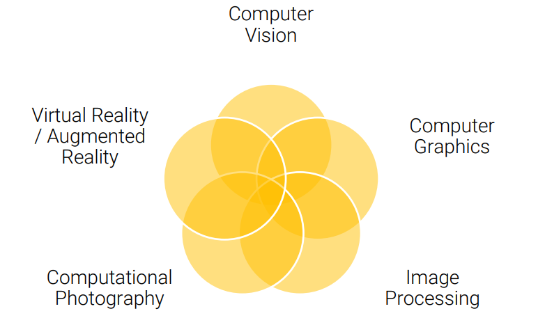 물론 위 정의대로 위 5개 기술을 칼로 긋듯 명확하게 표현하지는 못하고, 어느정도 겹치는 분야가 있다. 예를 들어 파노라마는 새로운 시각 컨텐츠를 만드니까 Computer Graphics라 할 수도 있고, 카메라의 한계를 극복하기 위한 Computational Photography라 할 수도 있다.
